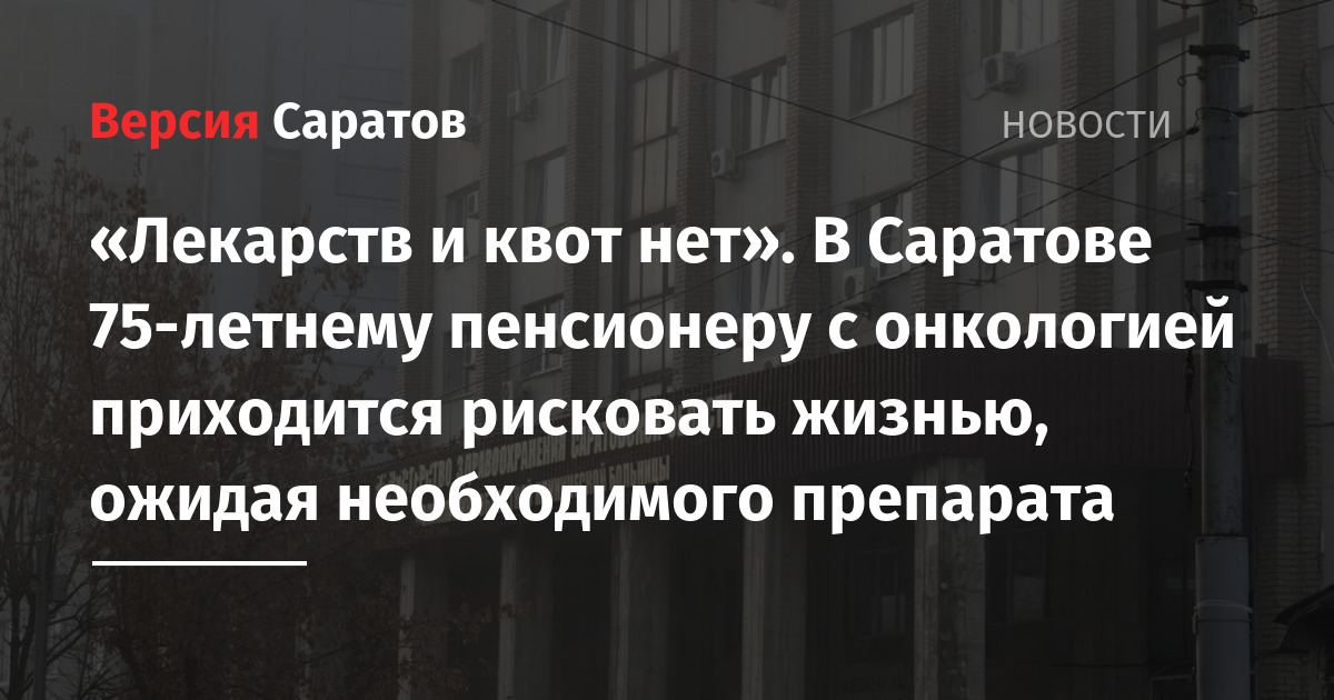 В Саратове 75-летнего пенсионера с онкологическим заболеванием заставляют ждать выдачи препарата, приемы которого необходимы для жизни. Об этом сообщила дочь мужчины в чате Telegram-канала мэрии.