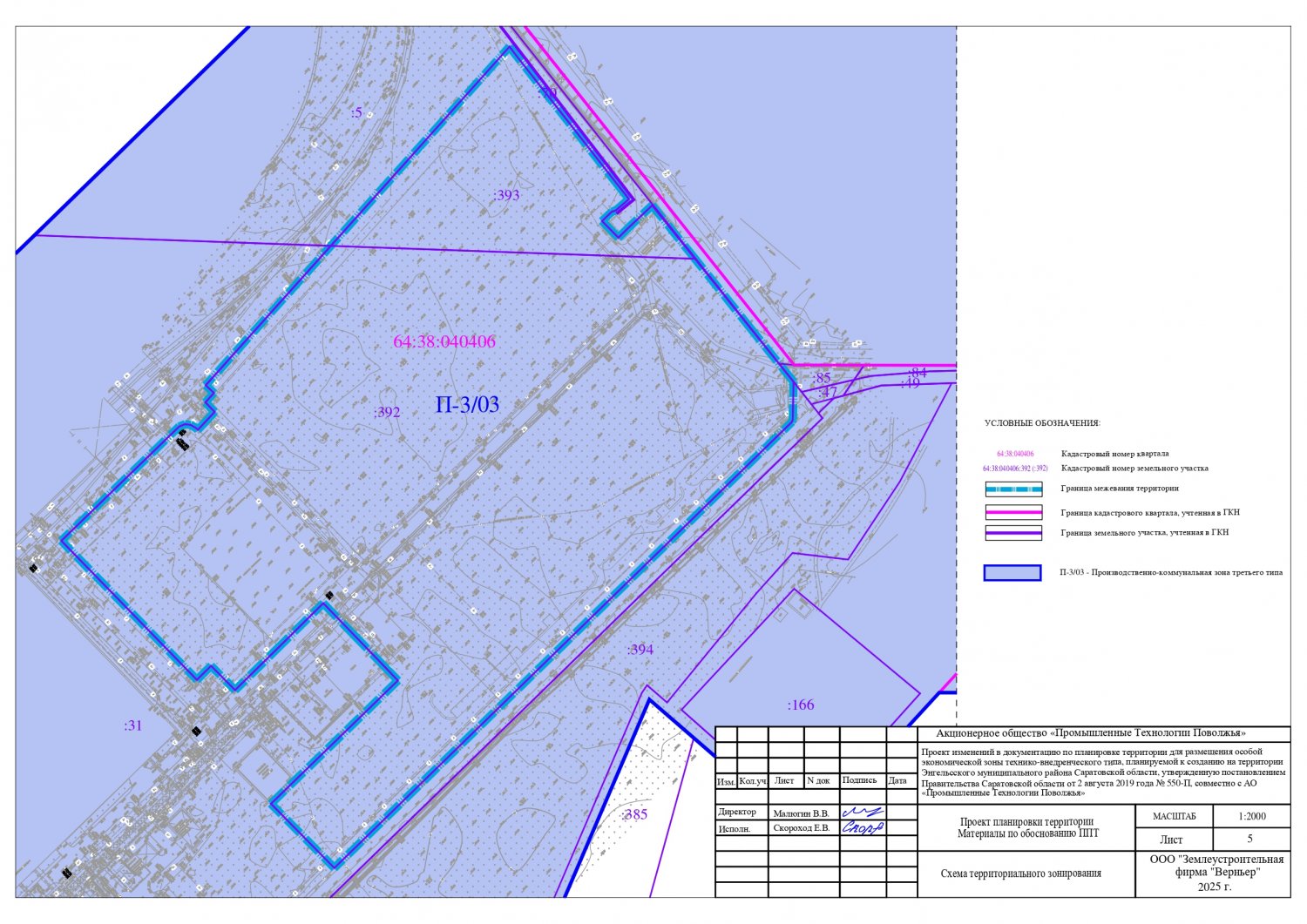 «Основной целью изменений в документацию по планировке территории является включение в особую экономическую зону земельных участков с кадастровыми номерами 64:38:040406:392 и 64:38:040406:393 на которых будут располагаться здание литейного цеха, а также вспомогательные строения и сооружения для обслуживания основного здания», — уточняется в проекте.