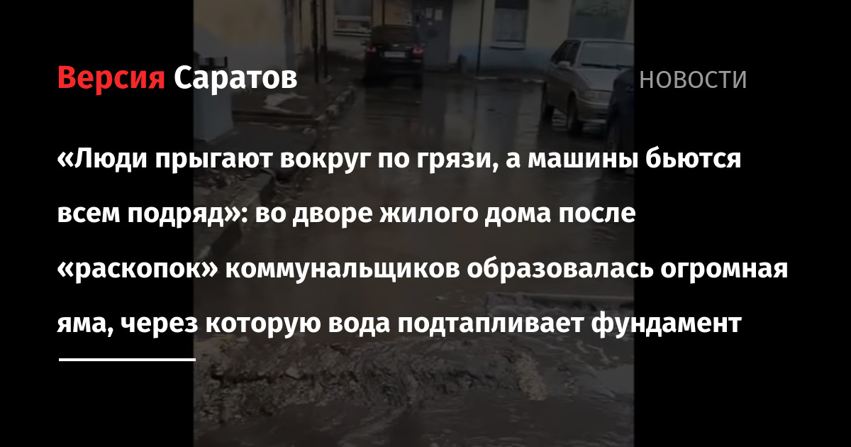 В Ленинском районе Саратова во дворе жилого дома уже больше года «красуется» незаасфальтированная яма, которая мешает горожанам пройти к собственному жилью, а автомобилям — проехать по улице без повреждений. Об этом сообщила местная жительница в чате Telegram-канала главы города Игоря Молчанова.