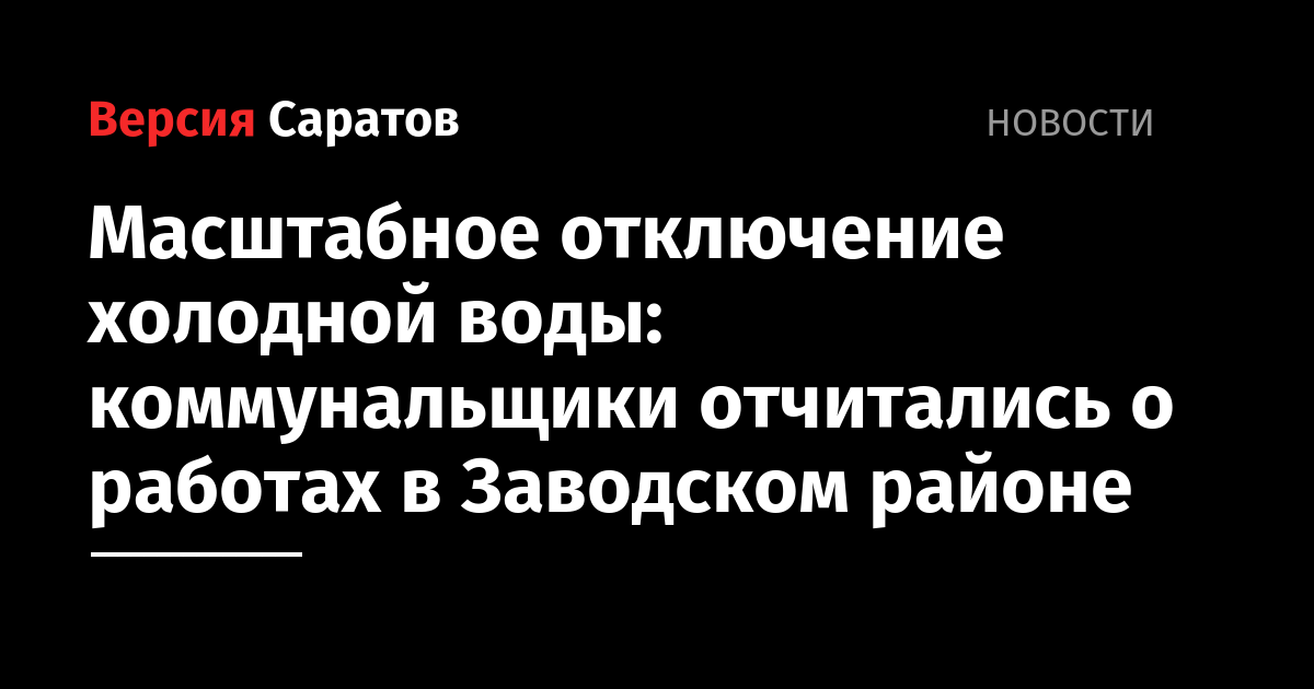 Сегодня в соответствии с утвержденным графиком специалисты ООО «Концессии водоснабжения — Саратов» приступили к выполнению плановых работ на магистральном водоводе в Заводскую зону, для проведения которых потребовалось ограничение холодного водоснабжения некоторых потребителей города.