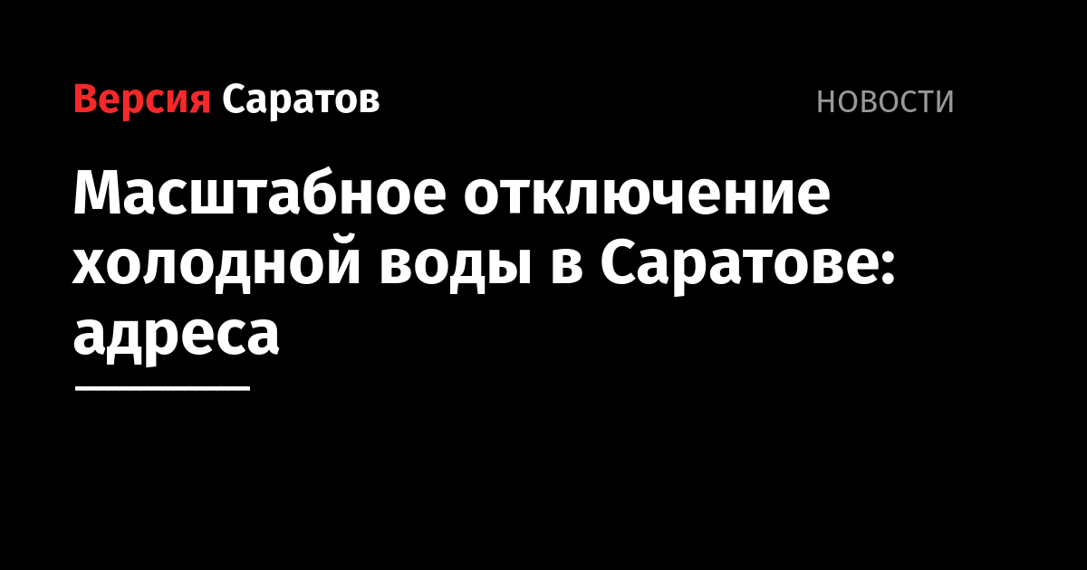 - Тысячи саратовцев остались без холодной воды: адреса