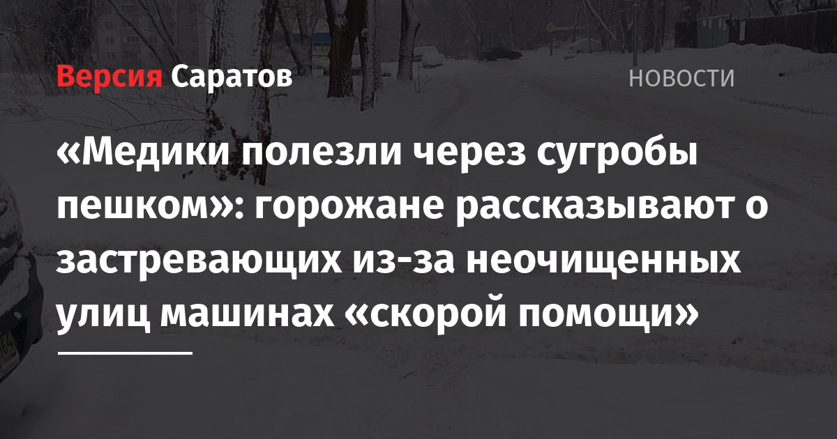 Об аналогичной ситуации рассказала пользователь Елена в Telegram-чате «Володин Саратов». По её, словам, двор дома № 25 на улице Миллеровская «завален снегом». «„Скорая помощь“ не смогла заехать даже во двор, медики на вызов полезли через сугробы пешком», — сообщила горожанка.