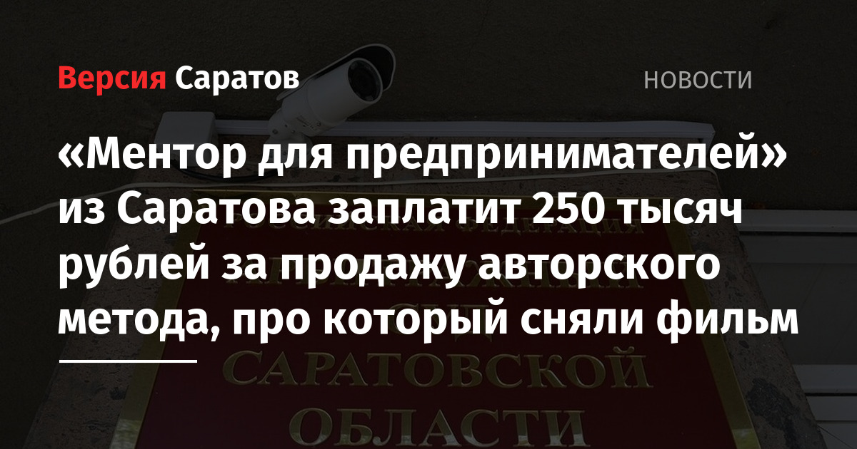 «Ментор для предпринимателей» из Саратова заплатит 250 тысяч рублей за продажу авторского метода, про который сняли фильм