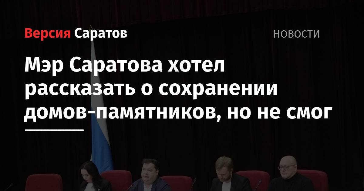 Сегодня, 26 марта, недавно назначенный мэр Саратова Игорь Молчанов должен был выступить на заседании градозащитного совета в Саратовской областной думе и рассказать о сохранении объектов культурного наследия в городе. Однако, из-за непредвиденных обстоятельств градоначальник не смог посетить мероприятие.