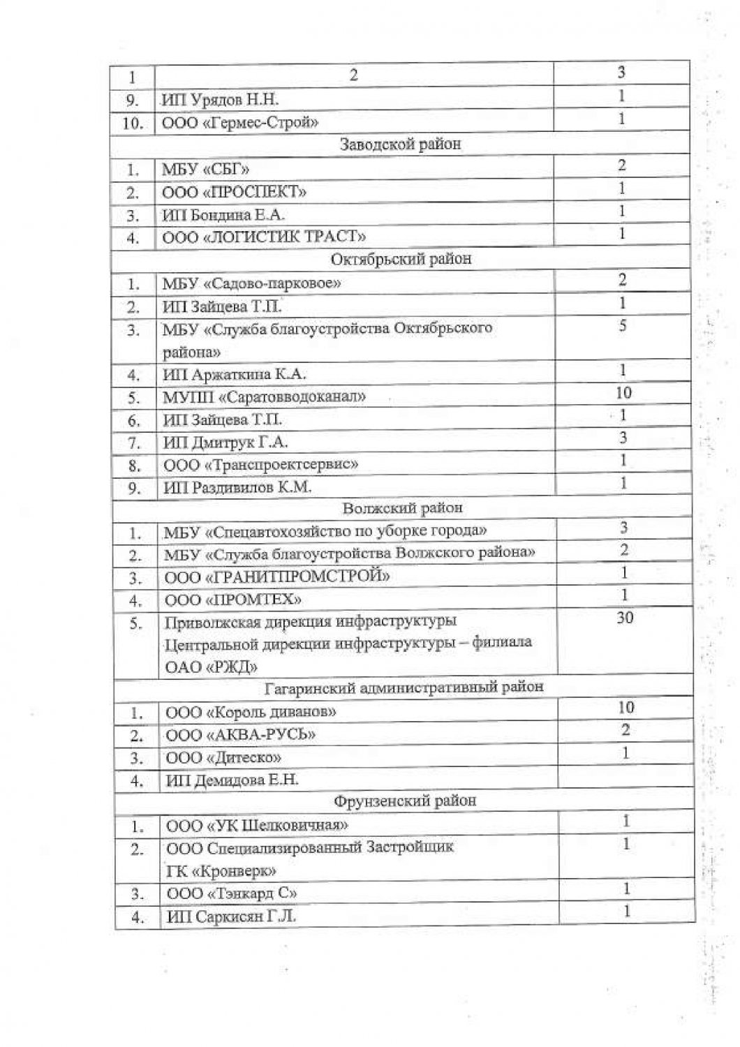 Изначально наибольшее число отбывающих наказание было направлено в МУПП «Саратовводоканал» и ООО «Король диванов» — по 10 человек. Теперь же в графе «Волжский район» появились данные, что сразу 30 осужденных работников получит Приволжская дирекция инфраструктуры ОАО «РЖД». В то же время МБУ «Дорстрой» Ленинского района дали всего двух рабочих. Остальные учреждения и фирмы также получили не более двух-трех человек.