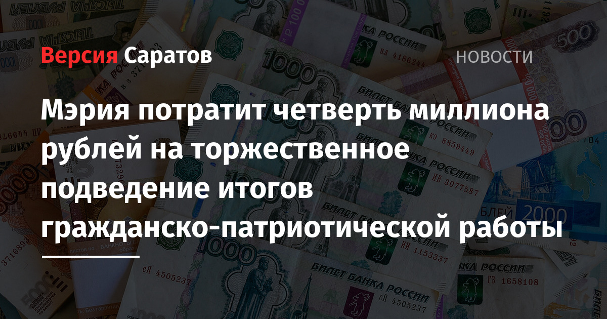 На официальном сайте для размещения госзаказа появилось извещение о проведении торгов, предметом которых является «оказание услуг по проведению торжественного мероприятия, посвященного подведению итогов гражданско-патриотической работы» в Саратове. Заказчиком является комитет по образованию администрации областного центра.