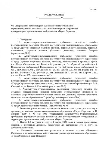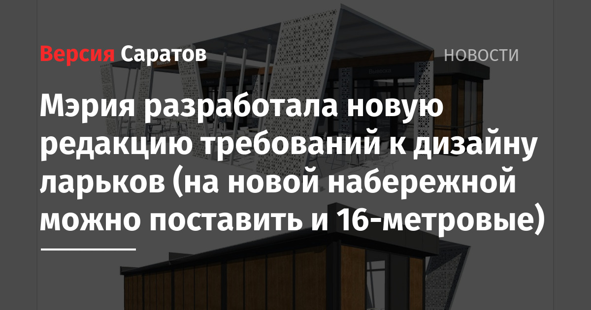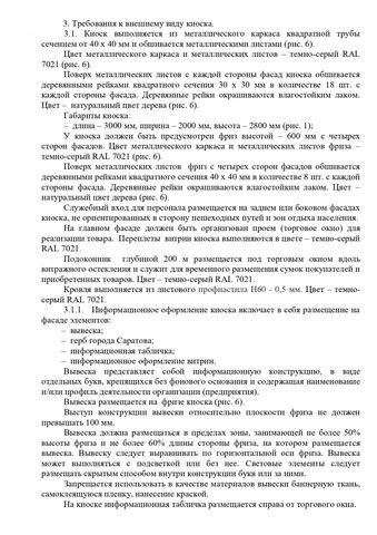 Чиновники во главе с главным архитектором Саратова Евгением Ивановым разработали подробные архитектурно-художественные требования городского дизайна для ларьков: торговых тележек, киосков, торговых автомагазинов, торговых павильонов, торговых палаток (бахчевых развалов), елочных базаров. Причем для некоторых улиц требования будут особенные.