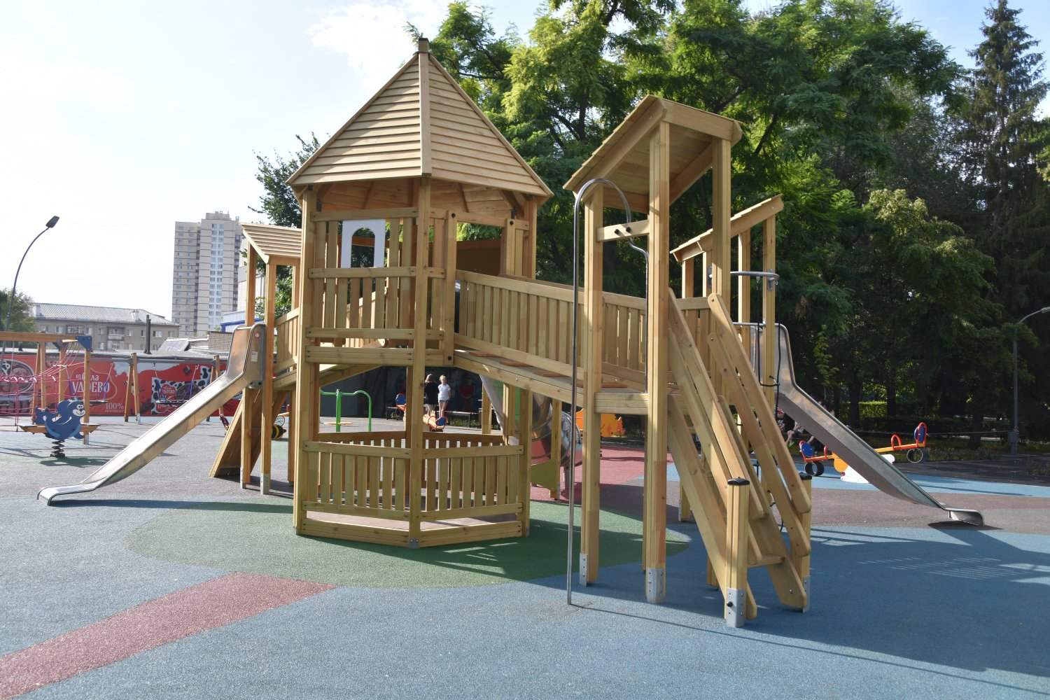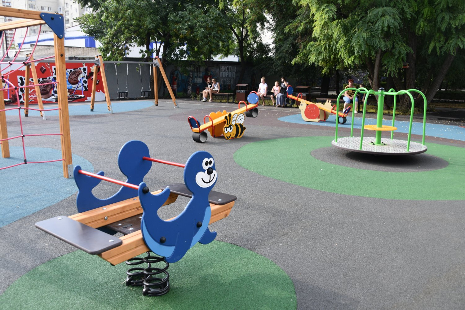 «Резиновое покрытие имеет все сертификаты и абсолютно безопасно. Оно хорошо себя чувствует под воздействием инфракрасных лучей, ультрафиолета. Все работы по реновации детской площадки произведены на средства ООО «Квартал», ООО «Парк Города «Лукоморье»» и фонда «Парк Города», — рассказала в 2022 году гендиректор «Лукоморья» Елена Телегина.