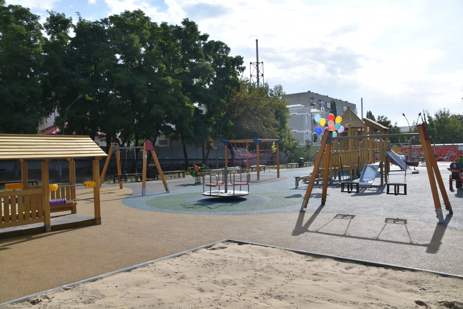 На тот момент это была первая и единственная площадка в Саратовской области, которая полностью соответствует новому законодательству «О безопасности оборудования и покрытий для детских игровых площадок». Оборудование, размещённое на ней, отличается тем, что изготовлено из импрегнированной древесины с глубокой химической обработкой в вакуумной камере.