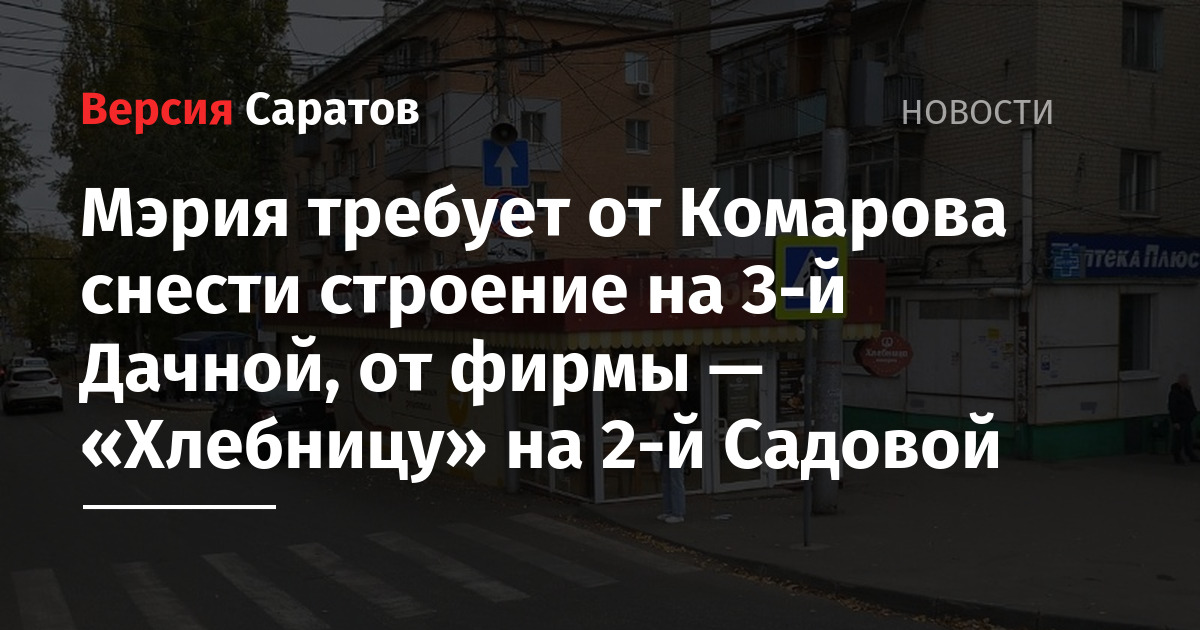 От ООО «Крокус-К» мэрия через суд требует признать самовольной постройкой нежилое здание мини-магазина площадью 55,9 кв. м. с кадастровым номером 64:48:050389:300, расположенный на улице Большая Садовая, 98Б. Участок, который требуют освободить чиновники, находится на пересечении улиц Большая Садовая и 2-я Садовая. От фирмы требуют снести одноэтажное строение с информационной вывеской «Хлебница».