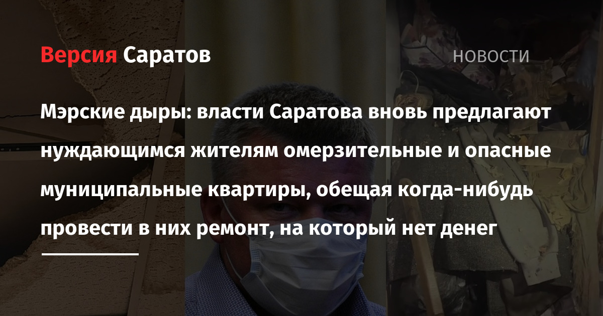 Всякий раз представители мэрии Саратова (глава — Михаил Исаев) обещали, что организуют ремонт в муниципальном жилье. Но только после того, как нуждающиеся подпишут документ о том, что готовы взять это жилище себе. Анна не верила обещаниям властей, опасаясь, что они начнут кормить «завтраками», и она так и не получит не только положенное по закону, но и прописанное в судебном акте, вступившем в законную силу, полноценное жильё.