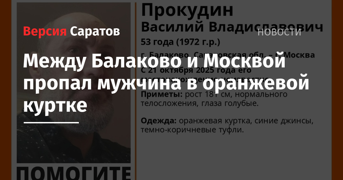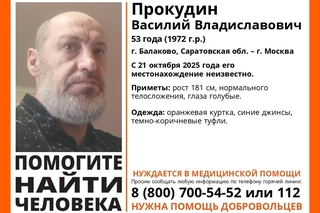 Между Балаково и Москвой пропал 53-летний Василий Прокудин. Об этом сообщил поисковый отряд «Лиза Алерт». В последний раз его видели 21 октября.