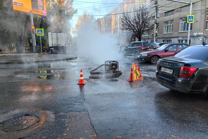 «Сегодня в ходе осмотра тепловых сетей было выявлено повреждение на внутриквартальной трубе. В настоящее время на пересечении Рабочей и Астраханской специалисты откачивают воду из тепловой камеры для проведения ремонта. Работы будут завершены сегодня, 23 октября, до конца дня».