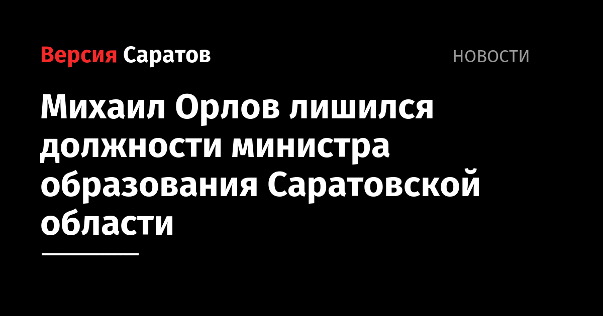 Сегодня, 2 декабря, был освобожден от должности заместитель председателя правительства Саратовской области — министр образования области Михаил Орлов. Соответствующий документ подписал губернатор Роман Бусаргин, о чем сообщила его пресс-служба.