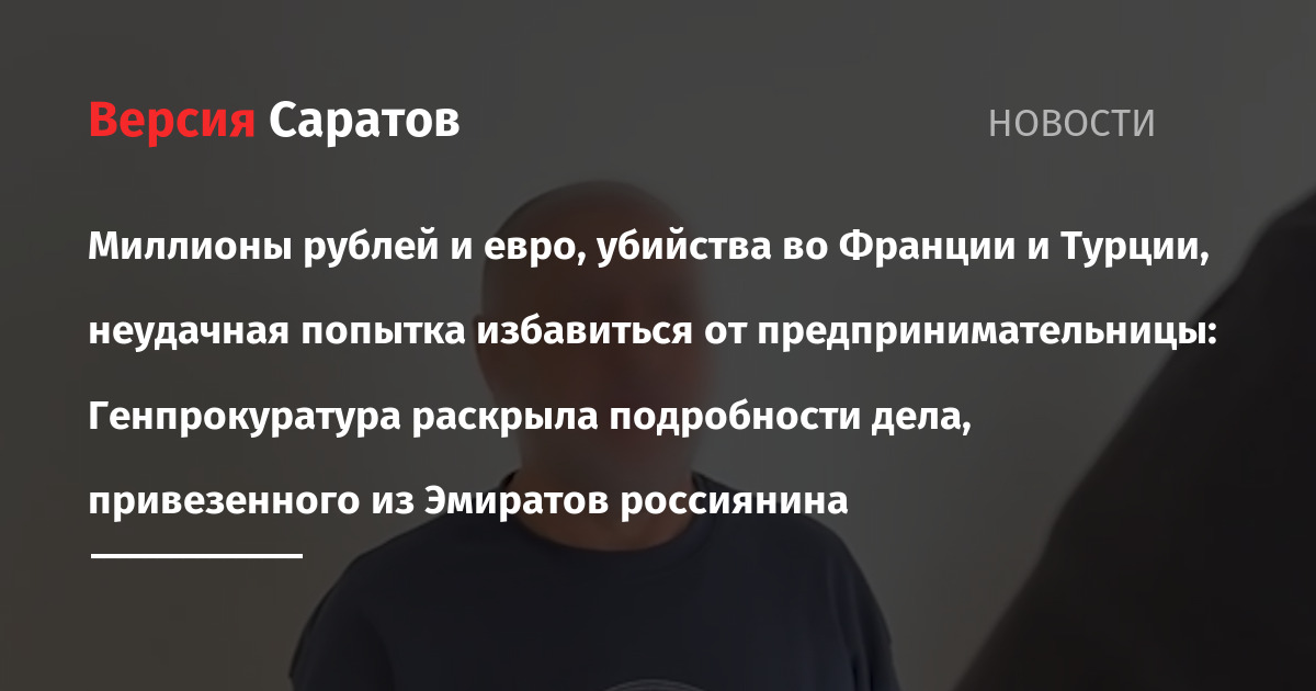 В ведомстве сообщили, что экстрадированного россиянина зовут Ахмад Хамидов. В 2009–2010 годах он занял у саратовского предпринимателя не меньше 84 миллионов рублей. По версии следствия, чтобы не отдавать деньги задержанный организовал преступную группу с целью убийства. Задуманное было реализовано 4 марта 2011 года: мужчина был убит из огнестрельного оружия. Злоумышленники также пытались убить его спутницу, однако ей удалось спастись.