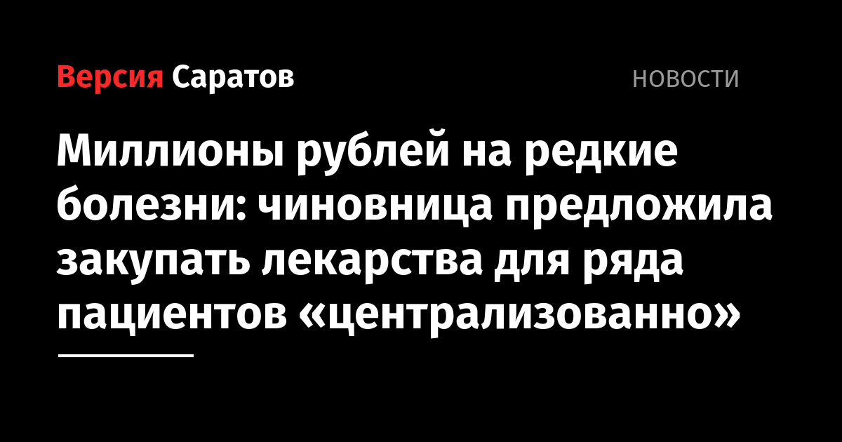 «В случае централизованного обеспечения лекарствами пациентов с орфанными заболеваниями с областного бюджета будет снята нагрузка, что позволит улучшить обеспечение лекарствами других льготных категорий граждан. Предлагаю рассмотреть возможность централизованных закупок лекарств для обеспечения детей с тяжелыми заболеваниями по заявкам органов исполнительной власти субъектов федерации», — добавила чиновница.
