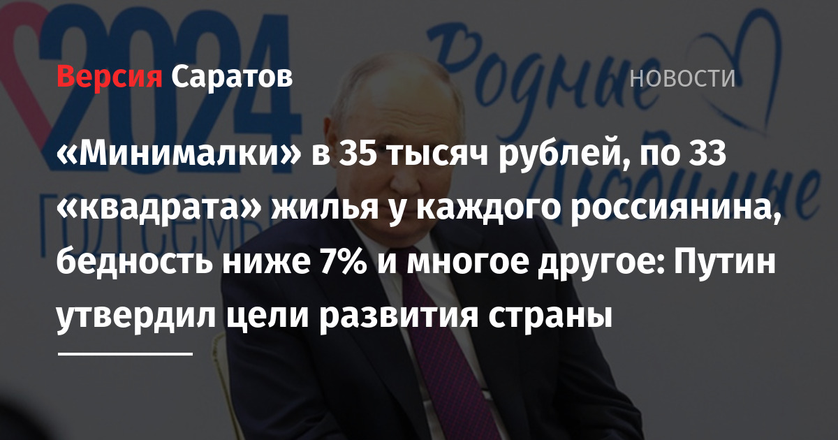 По планам президента, к 2030 году у каждого жителя страны будет не меньше 33 квадратных метров жилплощади, а в 2036 году — 38 «квадратов». Планируется благоустроить не менее 30 тысяч общественных территорий в разных населенных пунктах страны.