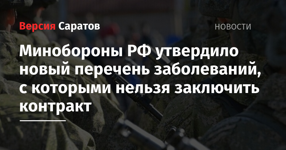 Министерство обороны РФ утвердило список заболеваний, при которых ограниченно годные к военной службе граждане не смогут быть приняты на службу по контракту в ВС РФ. Приказ подписал министр обороны РФ Андрей Белоусов, документ опубликовали на официальном портале правовых актов.