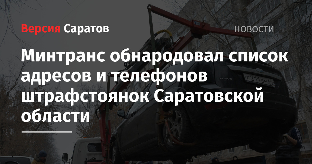 Министерство транспорта Саратовской области обнародовало список всех штрафстоянок, которые действуют на территории региона. Туда перемещают задержанные транспортные средства категорий «L», «M1», «O1», «O2», «N1», то есть легковые автомобили, мототранспорт и грузовики массой до 3,5 тонн.