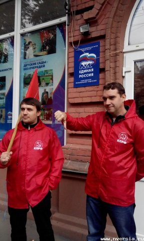 Сегодня саратовские представители "Молодой гвардии Единой России" попытались сорвать пикет коммунистов возле приемной ЕР на улице Советской. Сторонники КПРФ проводили пикет в защиту законопроекта о "детях войны", когда из здания вышли молодой человек и девушка с букетами в руках. "Младогвардейцы" стали поздравлять пенсионеров, участвующих в акции, с Днем пожилого человека и попытались вручить им цветы. Затем молодые люди предложили журналистам взять у них комментарий, но после отказа удалились. Первый секретарь Саратовского горкома КПРФ Александр Анидалов назвал поступок "младогвардейцев" кощунственным. "Тут стоят ветераны и дети войны и просят принять закон, а им вручили какие-то цветочки", - добавил.