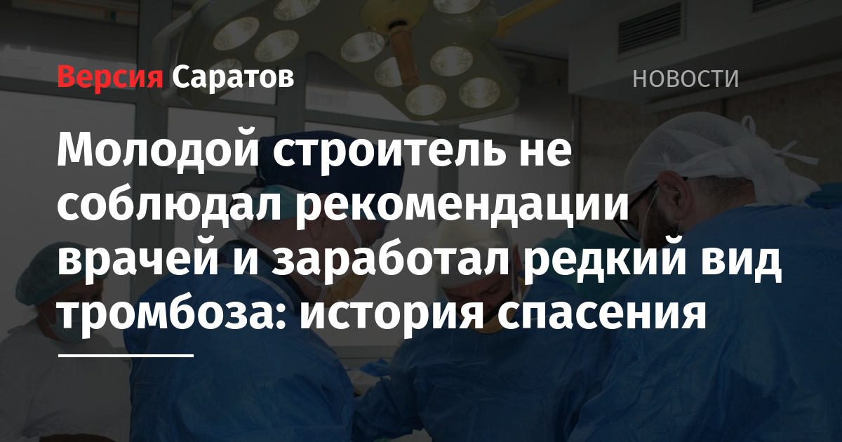 В Саратове медики СГМУ спасли жизнь молодому строителю с тяжелым случаем тромбоза подключичной вены (синдромом Педжета-Шреттера). Об этом рассказали на странице «Саратовского ГМУ имени Разумовского» в соцсети «ВКонтакте».