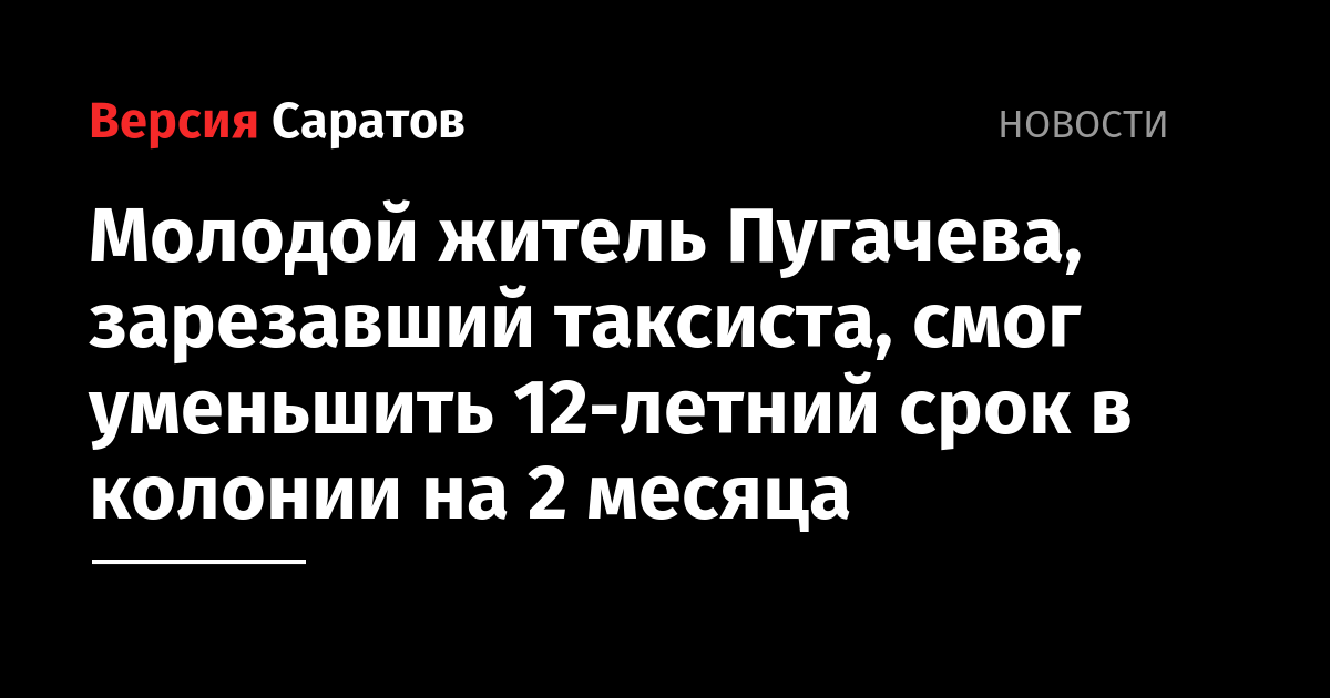 Молодой житель Пугачева, зарезавший таксиста, смог уменьшить 12-летний срок в колонии на 2 месяца