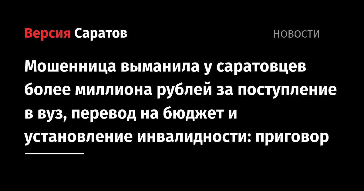 Также саратовчанка предлагала действующему студенту вуза перевестись на бюджетную форму обучения. В конечном счёте было похищено ещё 50 тысяч рублей.