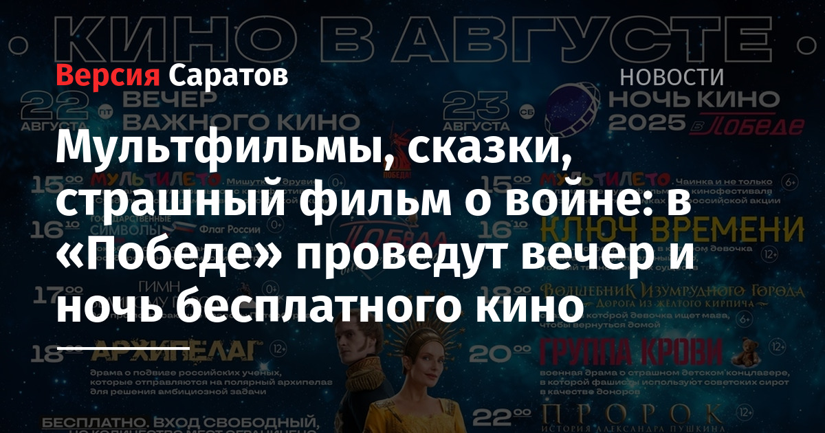 Стало известно, какие киносеансы можно будет посмотреть в кинотеатре «Победа» в Саратове. В учреждении представили афишу на август 2025 года.