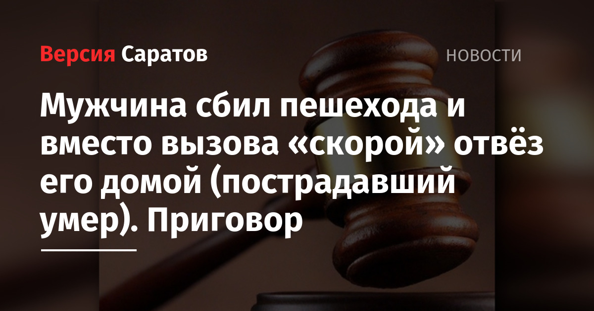 Мужчина сбил пешехода и вместо вызова «скорой» отвёз его домой (пострадавший умер). Приговор