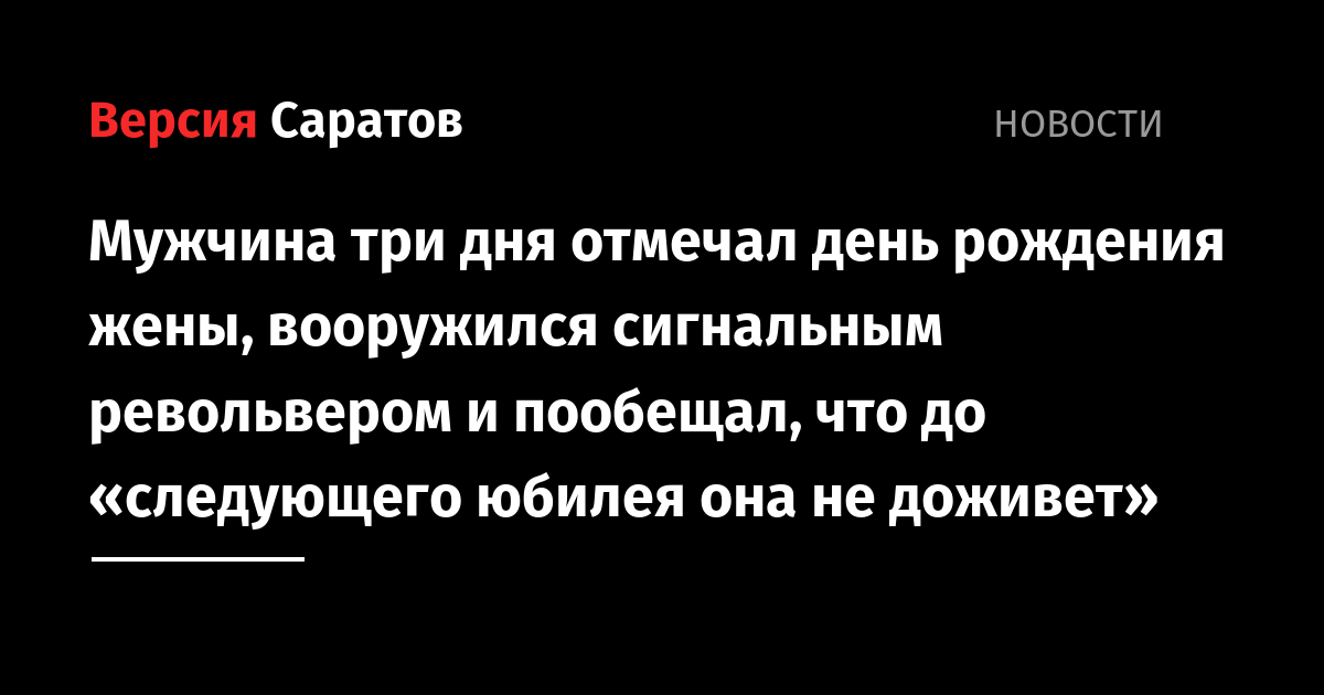 Мужчина три дня отмечал день рождения жены, вооружился сигнальным револьвером и пообещал, что до «следующего юбилея она не доживет»