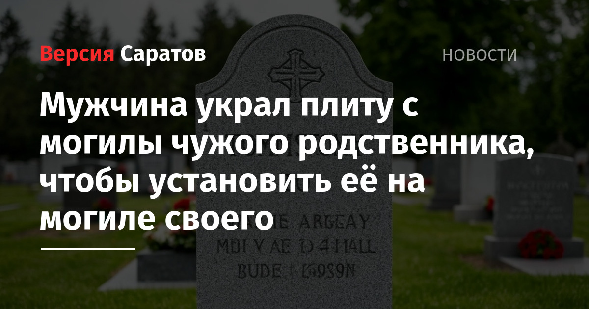 Мужчина украл плиту с могилы чужого родственника, чтобы установить её на могиле своего