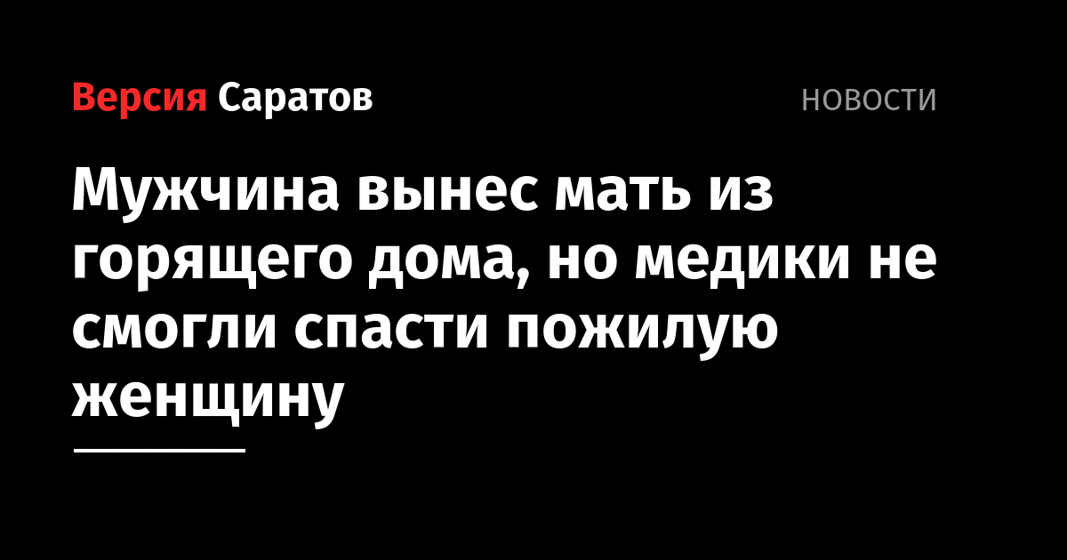 Мужчина вынес мать из горящего дома, но медики не смогли спасти пожилую женщину