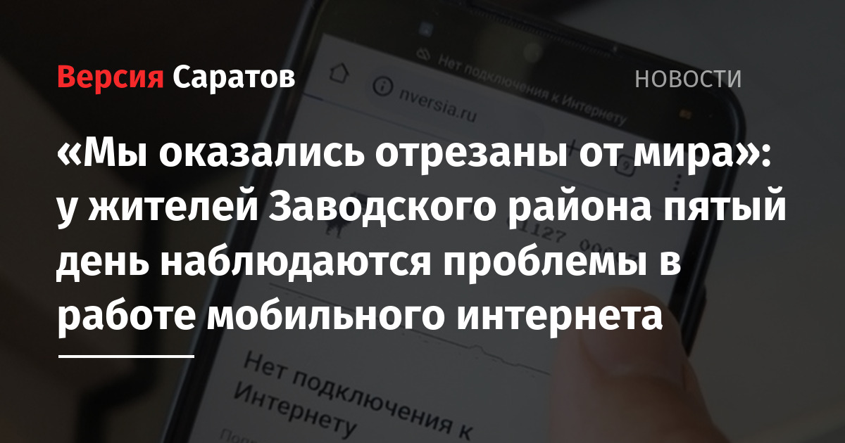У жителей Заводского района Саратова пятый день подряд наблюдаются проблемы в работе мобильного интернета. Об этом рассказала обратившаяся в ИА «Версия-Саратов» постоянная читательница.