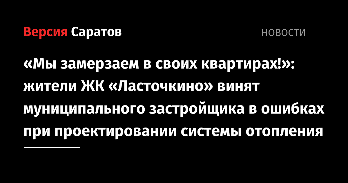 В редакцию ИА «Версия-Саратов» обратились несколько собственников жилых помещений микрорайона «Ласточкино» (Ленинский район, Саратов). По их словам, в 4 домах из 9-ти нового ЖК квартиры на нижних этажах практически не отапливаются. Жалобы во все инстанции от администрации района до приемной спикера Госдумы Вячеслава Володина не помогли решить проблему.