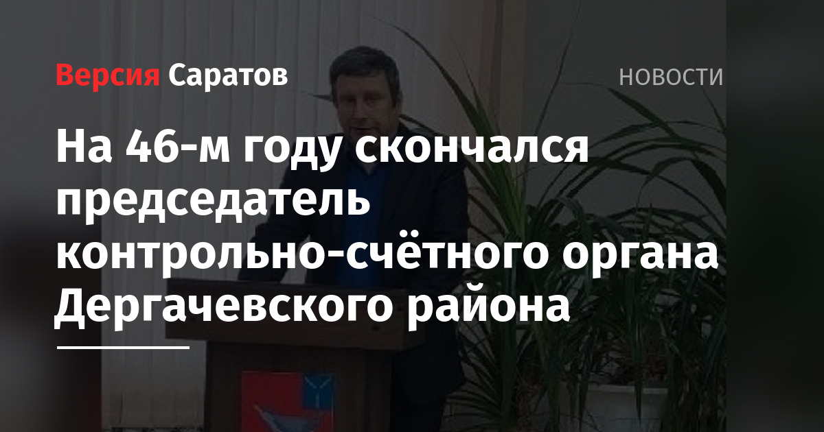 В Саратовской области на 46-м году жизни скоропостижно скончался председатель контрольно-счётного органа Дергачевского района Александр Балякин Васильевич. Об этом сообщили в районной администрации.
