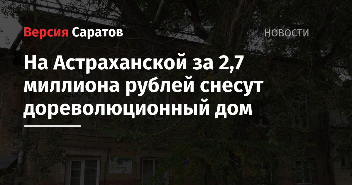 - Власти заплатят больше 9 миллионов рублей тому, кто аккуратно сровняет с землей дом в историческом центре Саратова