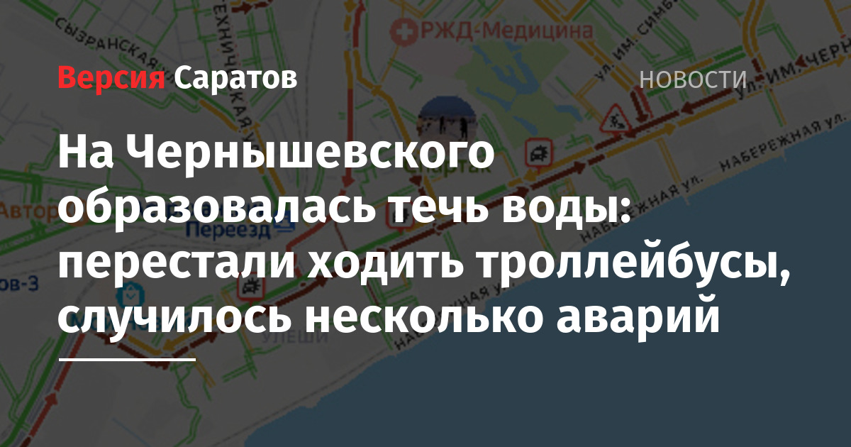 Сегодня, 11 февраля, из-за течи воды на улице Чернышевского в Саратове остановились два троллейбусных маршрута. Об этом сообщили в Telegram-канале «Саратов транспортный», закреплённом за администрацией областного центра.