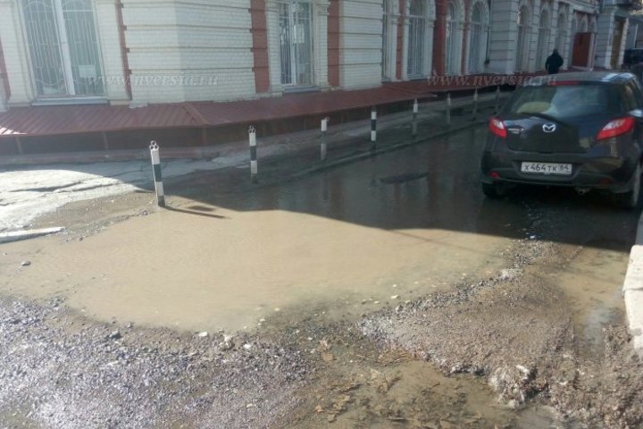 В Саратове на улице Чернышевского произошла коммунальная авария. На пересечении с Челюскинцев из-под асфальта течет вода.