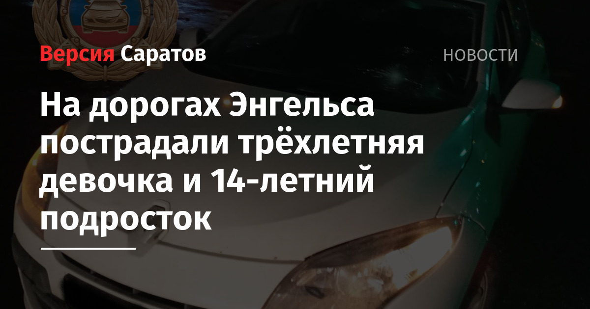 Вчера, 13 ноября, на дорогах Энгельса пострадали двое детей. Об этом сообщили в УГИБДД по Саратовской области.