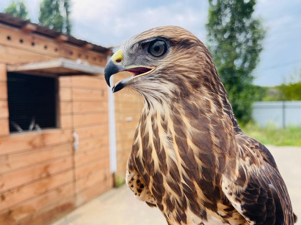 Канюк был привезен на комплекс раненым птенцом еще летом, и саратовские инженеры-орнитологи выхаживали птицу: лечили, организовали правильное питание в соответствии с возрастом и проводили необходимые процедуры по обработке когтей и клюва, обустроили вольер. После того, как канюк вырос и окреп, было решено, что он готов приступить к работе.