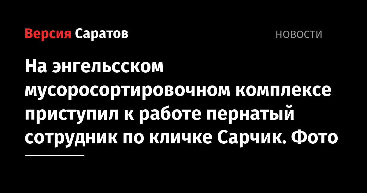 На мусоросортировочном комплексе АО «Ситиматик» в Энгельсе приступила к работе новая служебная птица — канюк по кличке Сарчик. Она была привлечена для биорепеллентации, то есть для отпугивания стайных птиц с территории комплекса и межмуниципального полигона.