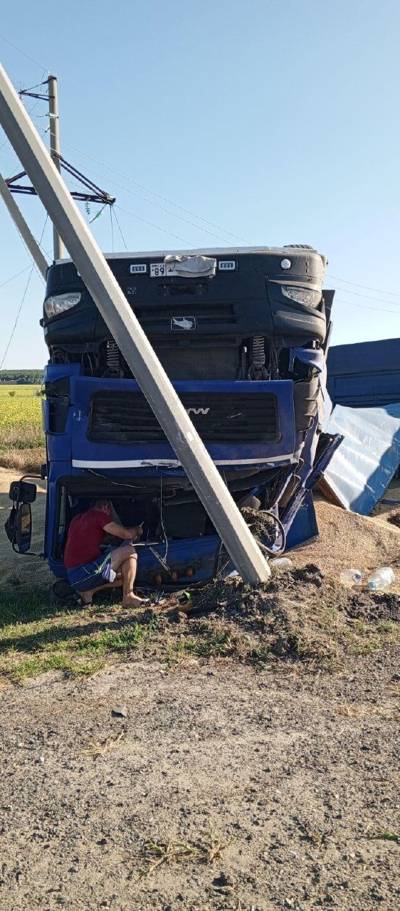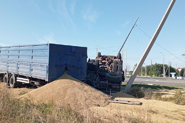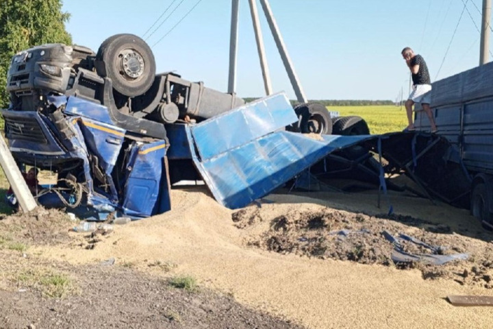Он съехал с проезжей части, сбил опору ЛЭП и перевернулся. Сам водитель не пострадал. Грузовик получил повреждения. Зерно, которое он перевозил, рассыпалось», — пишут чиновники.