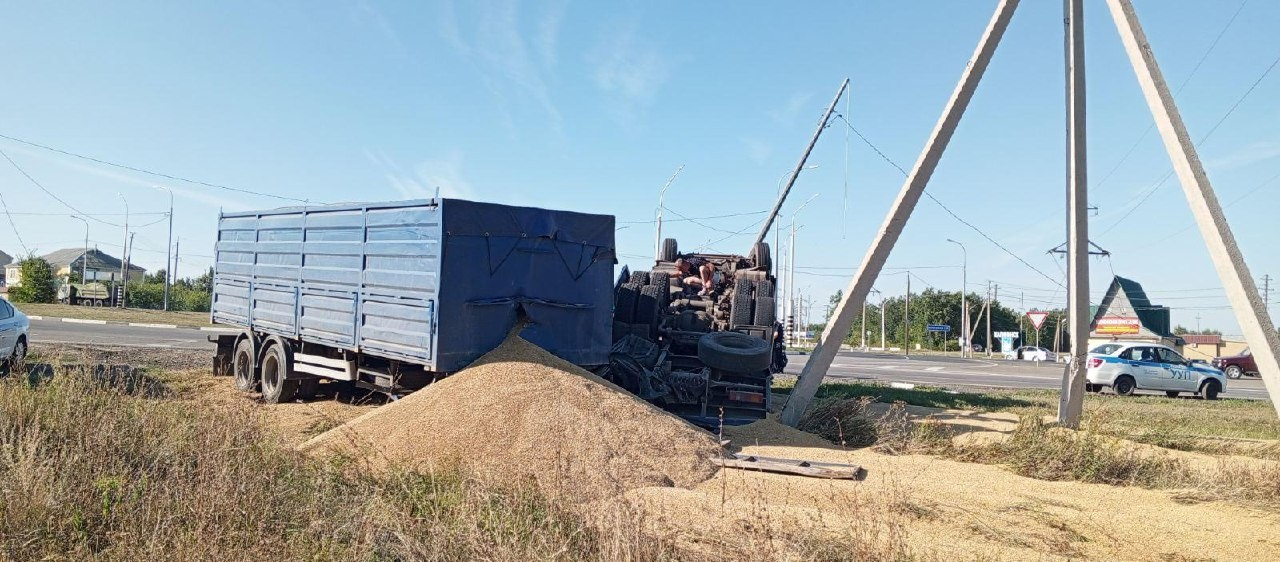 Вчера, 28 августа, в Калининском районе грузовик с зерном попал в ДТП. Об этом пишут в Telegram-канале администрации района.