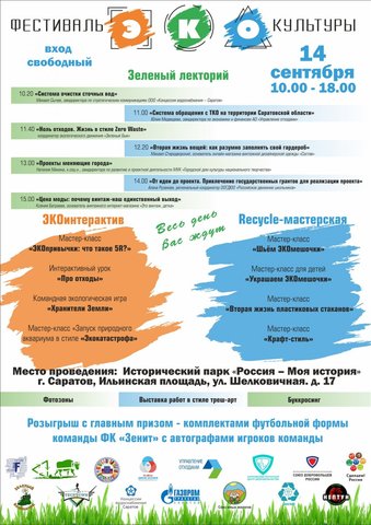 Первый Фестиваль ЭКОкультуры пройдет 14 сентября на площадке Исторического парка «Россия — Моя история». Его участники подготовили для саратовцев обширную программу, рассчитанную на самые разные возрастные категории. Но всех объединяет одно — стремление к осознанному потреблению и бережному отношению к окружающей среде.
