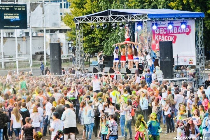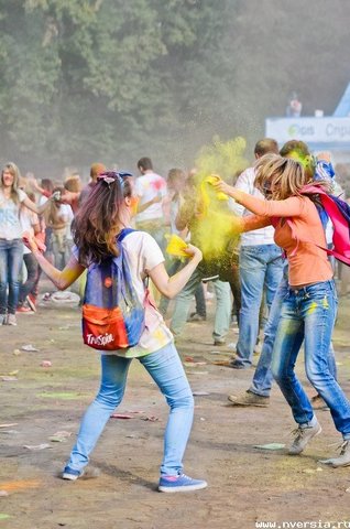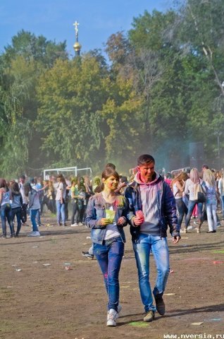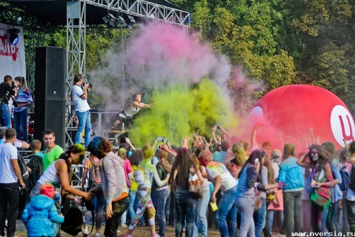 В воскресенье, 21 сентября, в Саратове на стадионе "Динамо" прошел фестиваль красок Холи. По словам организатора Надежды Мещеряковой, на него собралось около пяти тысяч человек. В течение нескольких часов празднующие осыпали себя и окружающих сухими красками под музыку танцевальных и певческих коллективов города. "Мы организуем в Саратове этот фестиваль впервые, хотя по всему миру он проходит уже давно. Я была на подобной акции в Москве, увидела, как это активно и позитивно, и подумала, что это нужно сделать и в Саратове", - рассказала Надежда Мещерякова корреспонденту ИА "Версия-Саратов". Она сообщила, что специально для акции на стадион было завезено 1,5 тонны сухих красок, которые продавались на стадионе по 150 рублей за пакет. Два пакета краски входили в стоимость билета. "Они безопасные, основаны на пищевых красителях", - добавила организатор.