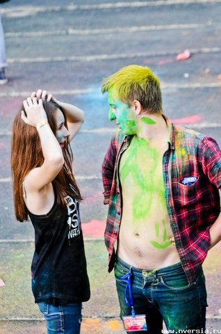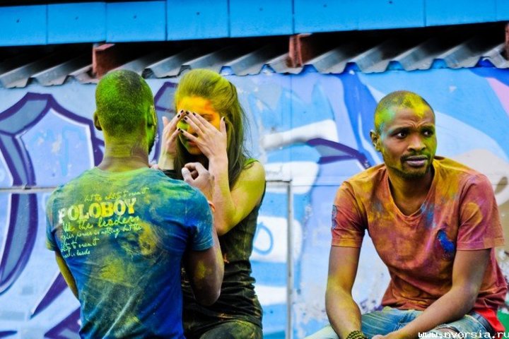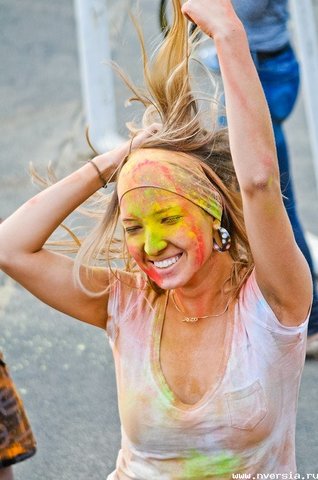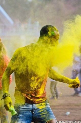 Фестиваль Холи - ежегодный индуистский праздник начала весны, празднуется в конце февраля - начале марта. Из-за своей красочности так же называется "Фестиваль красок". Согласно данным Википедии, в Индии осыпание производится лечебными порошками на основе трав (ним, кумкум, халди, билва и другими), поэтому рекомендуется лекарями аюрведы по время эпидемий ОРЗ и ОРВИ.