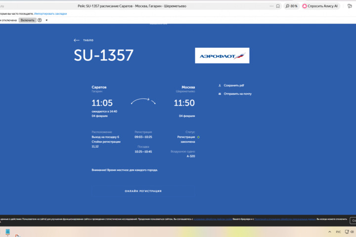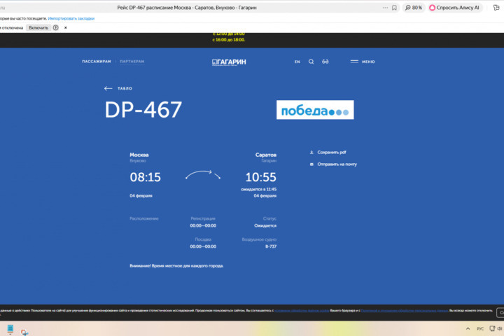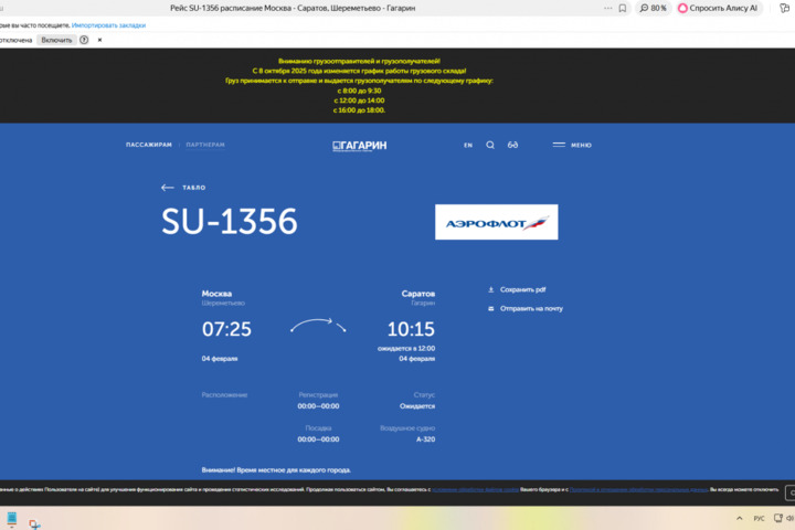 Сегодня, 4 февраля, на фоне объявленной угрозы атаки БПЛА в Саратовской области и закрытии аэропорта, в «Гагарине» задерживаются рейсы. Это следует из онлайн-табло воздушной гавани.