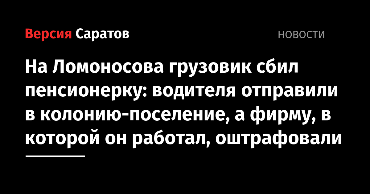 На Ломоносова грузовик сбил пенсионерку: водителя отправили в колонию-поселение, а фирму, в которой он работал, оштрафовали