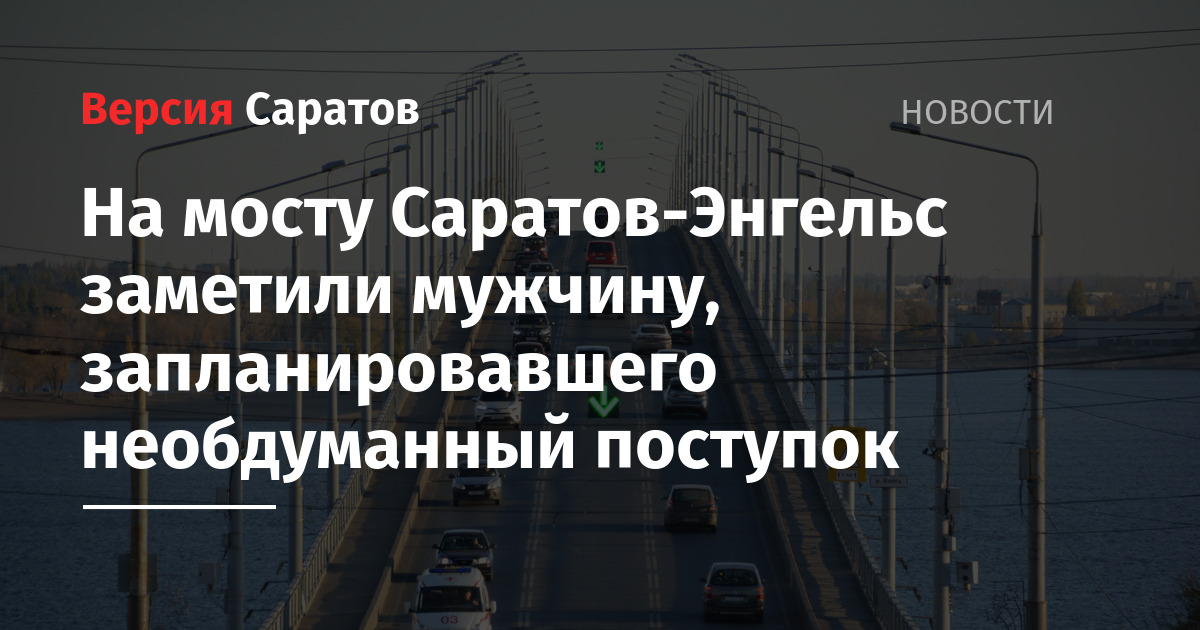 Сегодня утром, 2 сентября, на старом мосту Саратов-Энгельс заметили мужчину, который планировал совершить необдуманный поступок. Об этом нашему корреспонденту сообщили в пресс-службе минздрава Саратовской области.