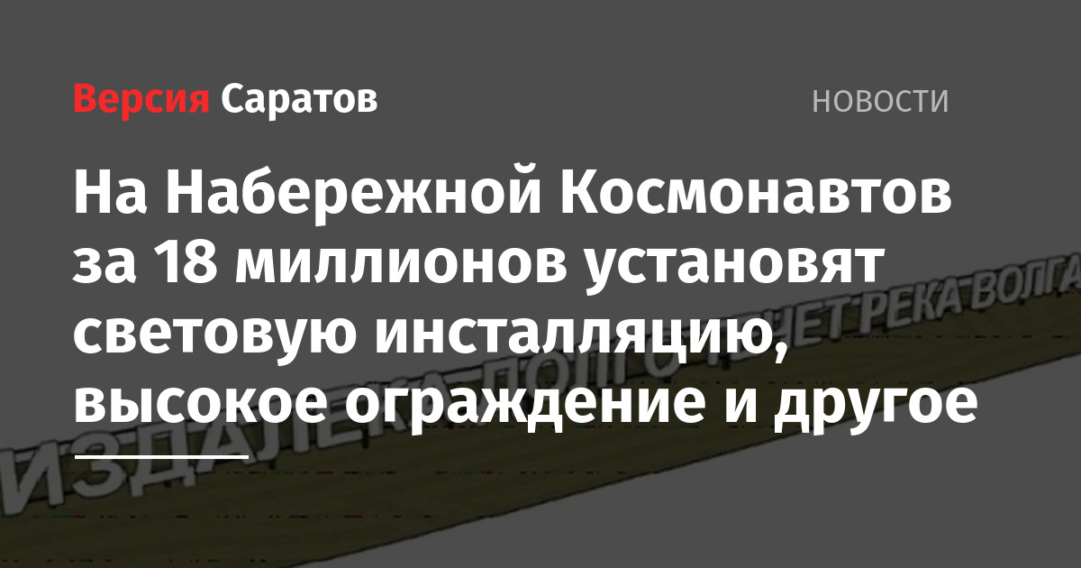 Остальная сумма будет потрачена на покупку и установку парковых скамеек, шезлонгов, урн, перголы с мебелью и дивана-качелей. Также до 15 июня 2026 года на Набережной Космонавтов должна появиться световая инсталляция, представляющая собой комплект световых коробов, выполненных в виде букв «ИЗДАЛЕКА ДОЛГО ТЕЧЕТ РЕКА ВОЛГА». Надпись будет высотой полтора метра и длиной 40 метров.